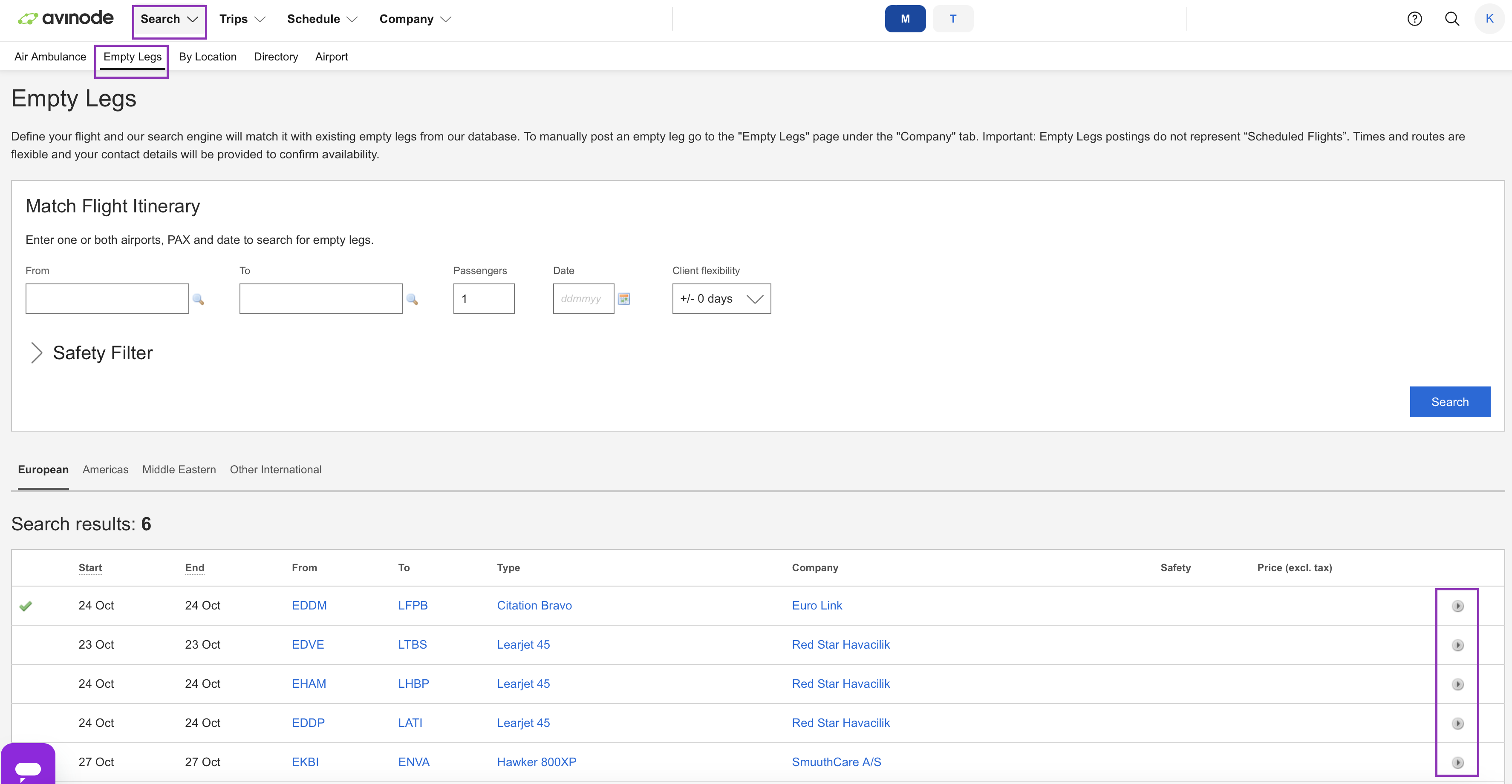 Always remember to review the Empty Leg tab to discover the most cost-effective flight options.Learn morehere.